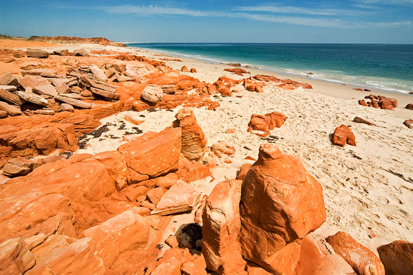 the dramatic red pindan earth reach out towards the ocean