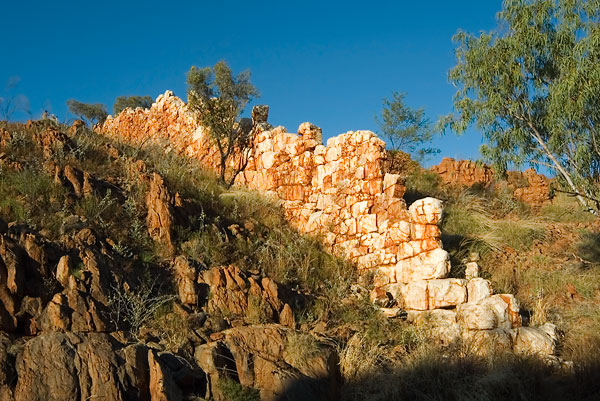 | over the eons the wall remained standing as the quartz being harder and more resistant to weathering whilst the softer surrounding rocks have been eroded away, and its appearance being like of a miniature 'Great Wall of China' | '. | ||||