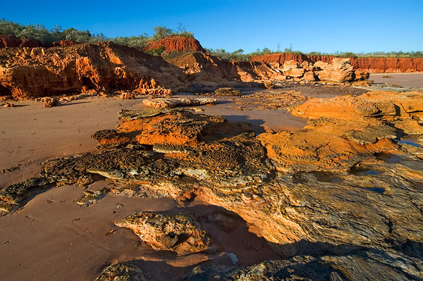 Broome Sandstone is noted for its striking colours and unusual shapes, some rocks show the rippling effects, while others have been heavily eroded to form dome-shaped cross bedding features