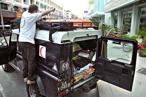 Ray preparing his landy for the difficult task of delivering aid to refugee encampments that are hard getting to