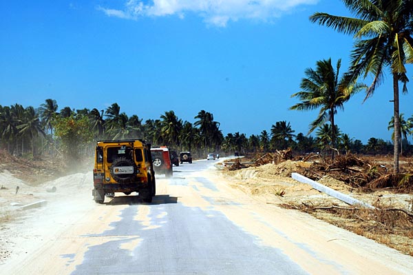 the road into Pankarang Cape of Khao Lak was layered with sand from the sea, brought there by the giant waves