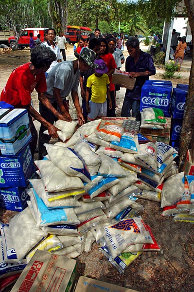 our load of rice, noodles and drinking water being distributed to the sea gipsies who were made homeless by the tsunamis
