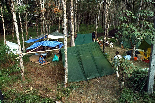 survivors of the tragedy have moved inland to set up temporary shelter in the forests and plantations on higher ground