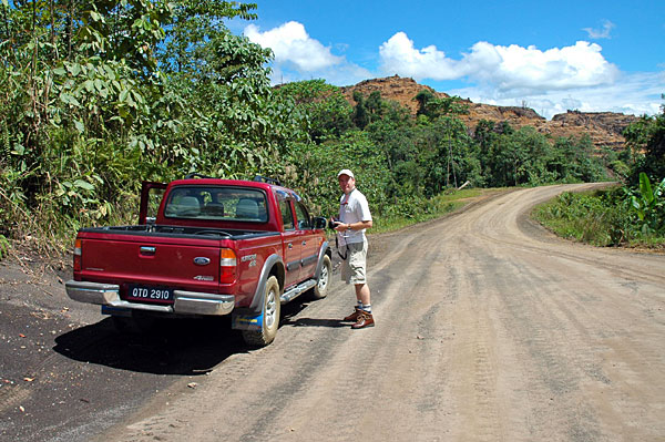 unfamiliar with the situation, we kept off the road far away from harm's way as a logging truck approached us...
