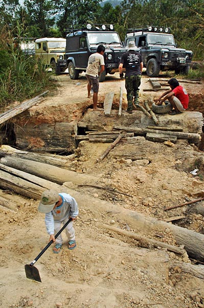 hard work to make the vee-dip across Sungei Dohol more passable to Landy traffic