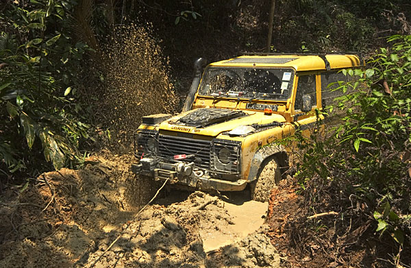 engine revving, wheel spinning, fountain of mud splashing... hmmmm