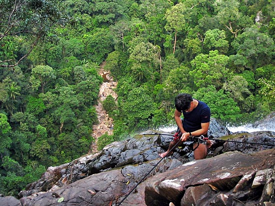 Cheng Chye rigging up the main descent line to our anchor lines