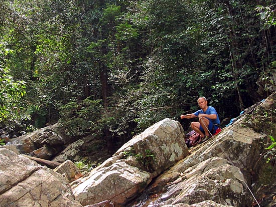 Anthony feeding our very long 200 meters worth of rope to Cheng Chye who was working at the edge