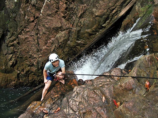 Anthony preparing to descend the final step of the fall