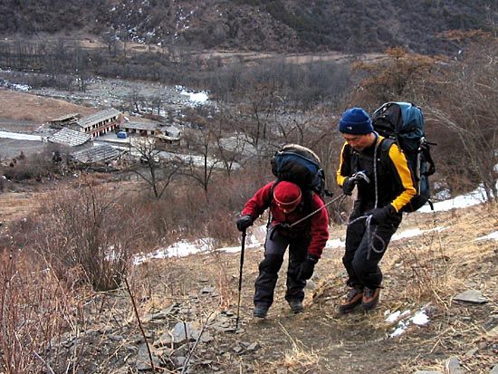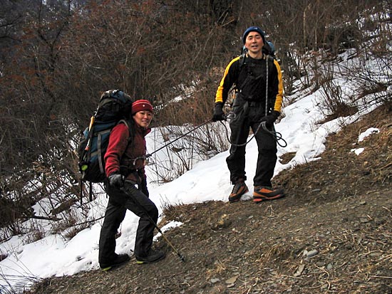 | Kim Boon and Xiao Di making an assessment of their next climb | ||||