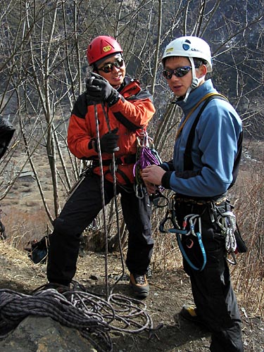 | Kim Boon belaying Xiao Di from the wall | ||||
