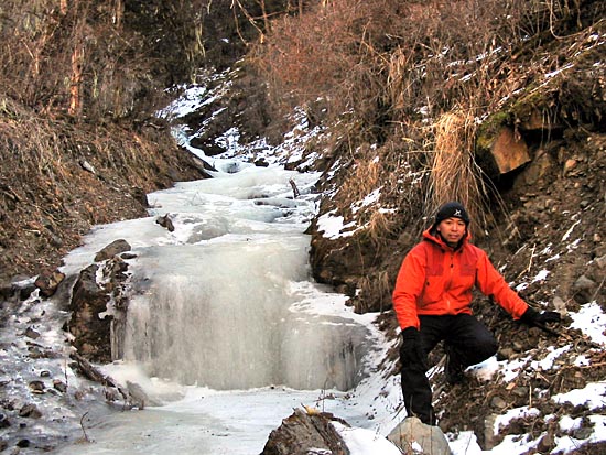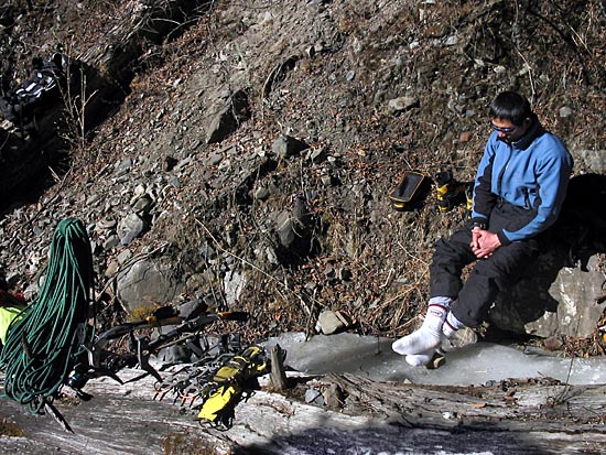 | this day, we had to cross the river as we as intended climb was on a frozen waterfall on the eastern wall of the valley | ||||
