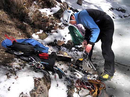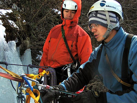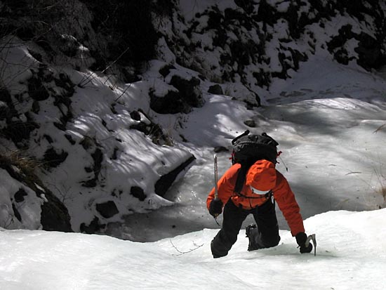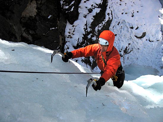 | a short day of climbing as the sunlight makes the waterfall too dangerous to climb by early afternoon | ||||