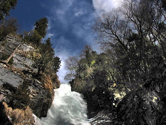 | this frozen waterfall gets much sunlight from the late morning and hence the climb gets very wet from the water trickles | ||||