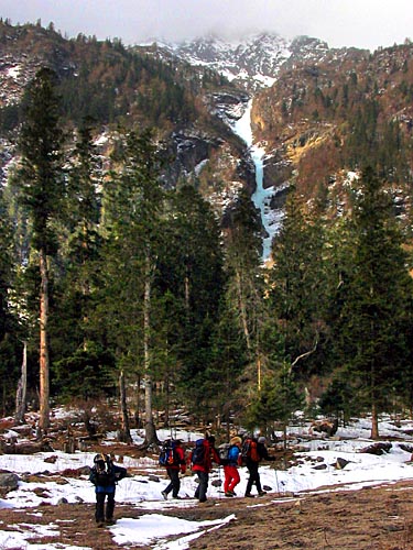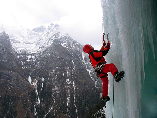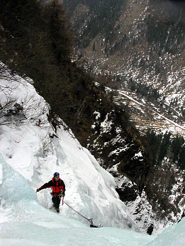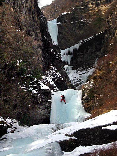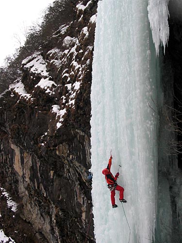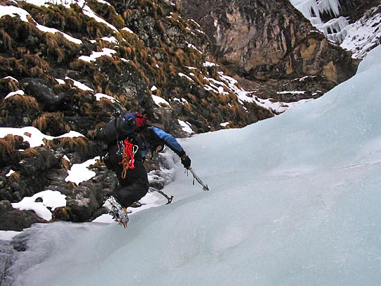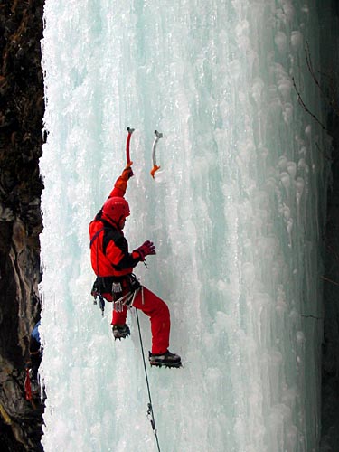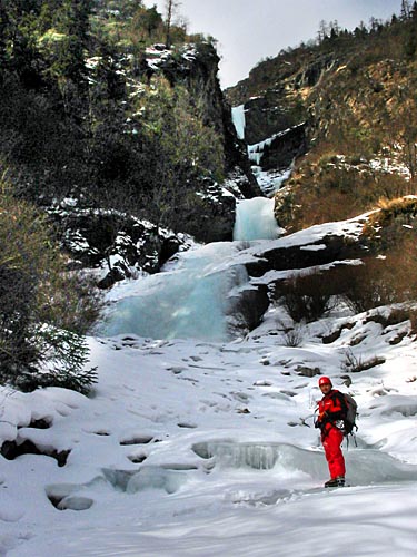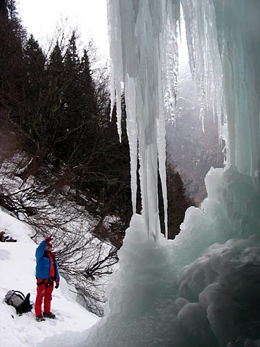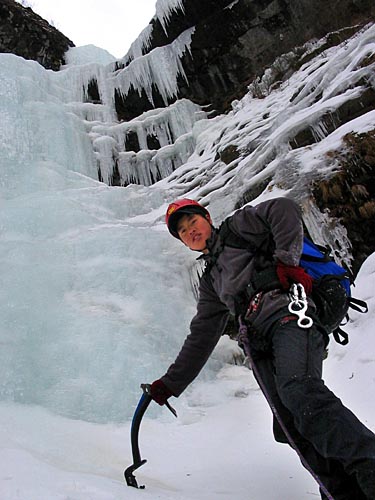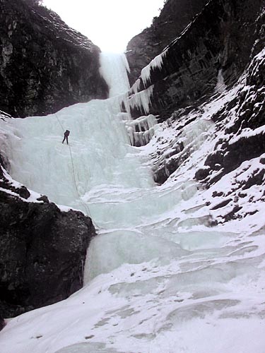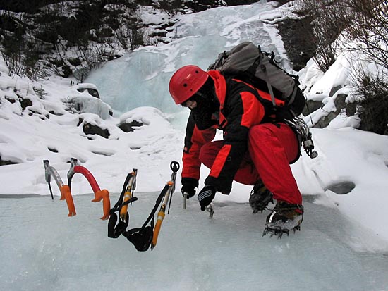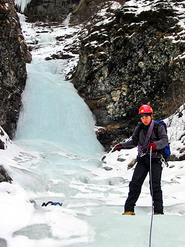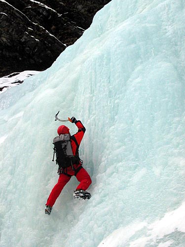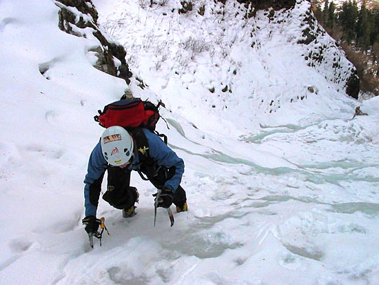 | easy walking with crampons up the icy cascades | ||||