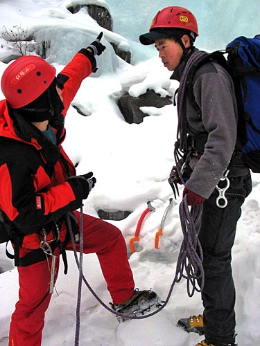 | setting up ice protection for a lesson on setting quick anchors on multipitch climbs | ||||