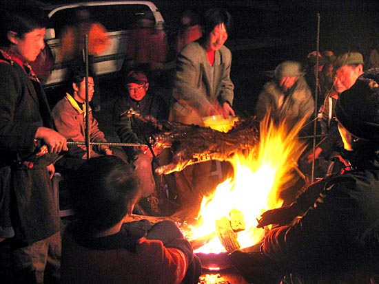 | roasting a lamb over a open fire in cerebration | ||||