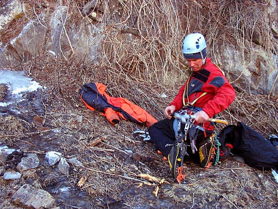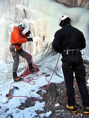 | Guy and Craig gearing up in preparation of their lead climb | ||||