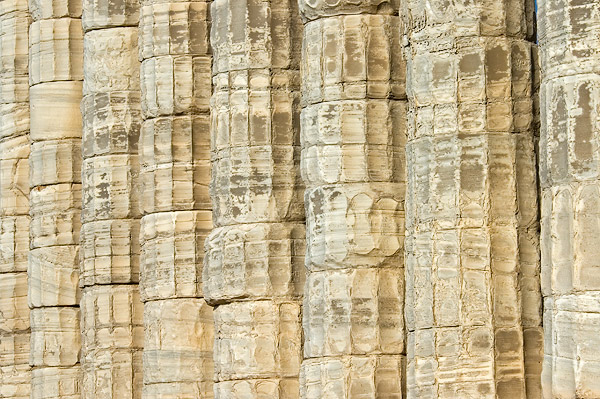 | the design of the temple is a typical hexastyle (it had a front portico with 6 columns), and as with all Greek temples, the Poseidon building was rectangular, with a colonnade on all four sides; the total number of original columns was 42 but only 18 columns still stand today | ||||