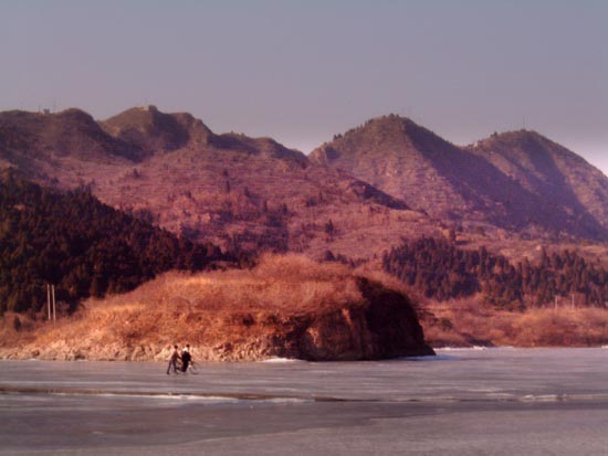 o our delight, the reservoir has been frozen over and there were many people on the ice